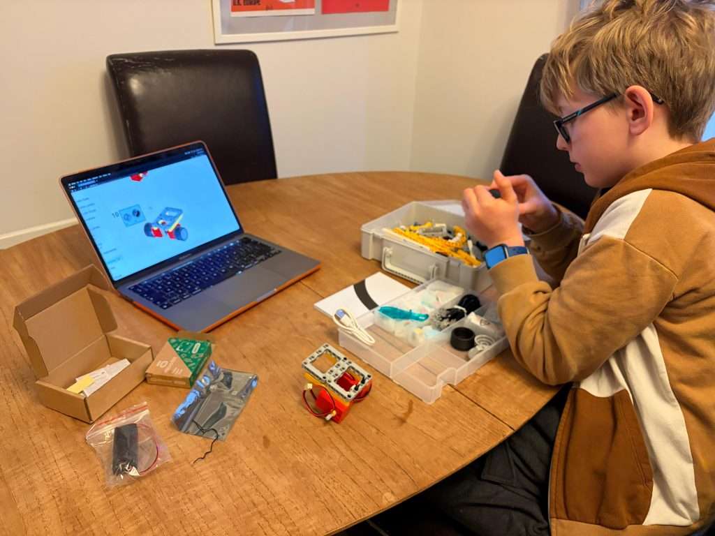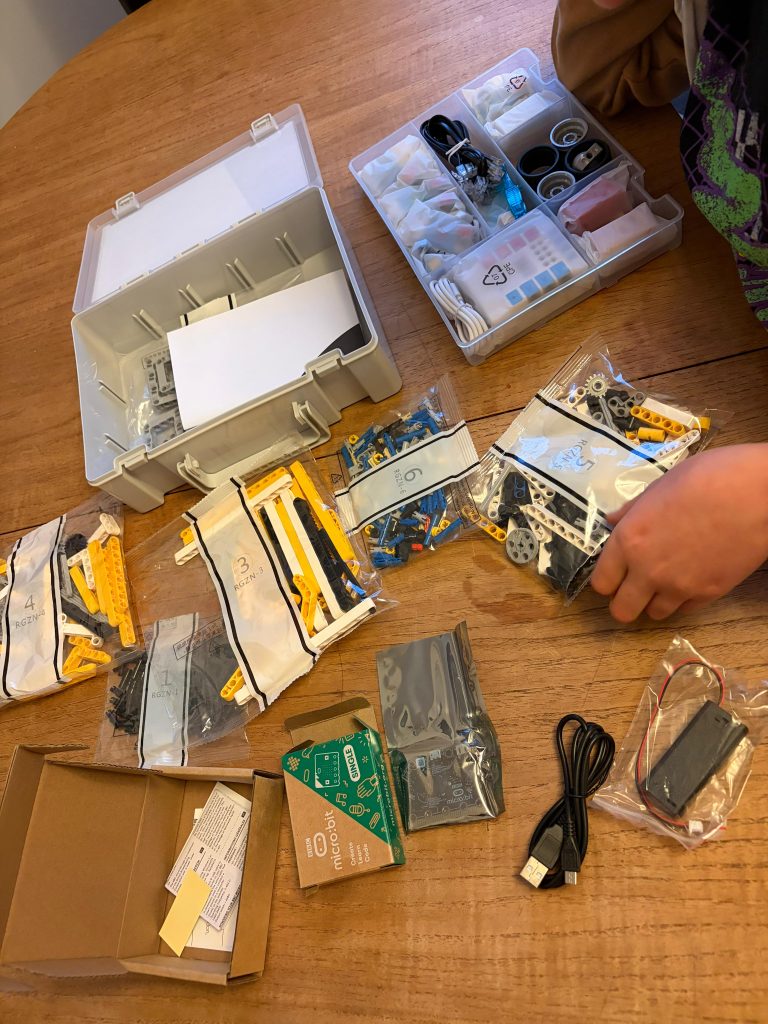 The box contained a whole lot of Technics pieces and a unit which connects sensors and controls motors. I put that on charge while working on my build.