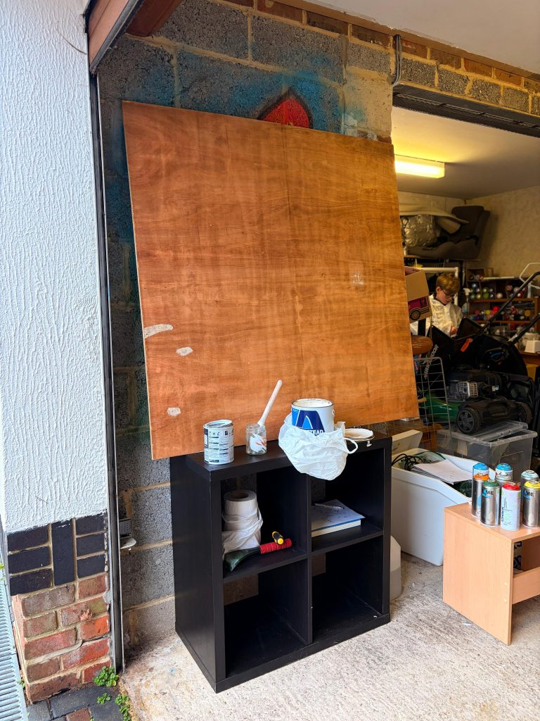 Next we went to the garage. I wanted to get my characters drawn in a bigger, more spectacular way! This was going to require paint.