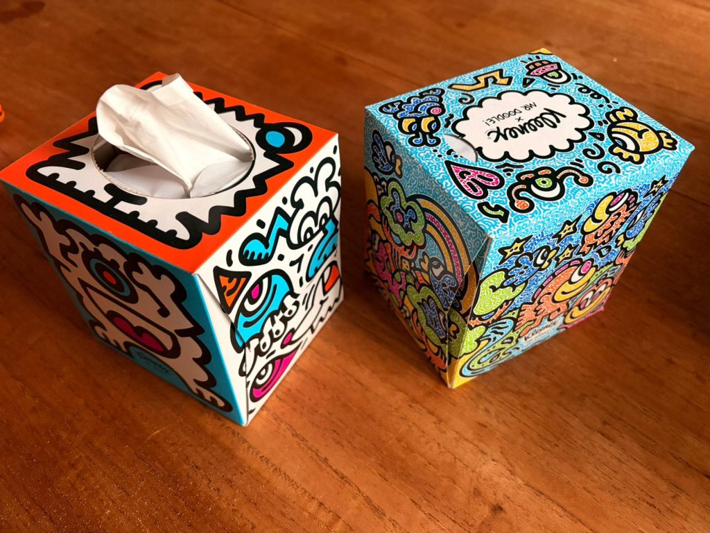 My dad has obviously done the shopping this week because now we’ve got some silly tissue boxes that are designed by Mr Doodle. I’m pretty sure that’s not his real name, but who knows! They made me think about the drawings I’ve been doing.