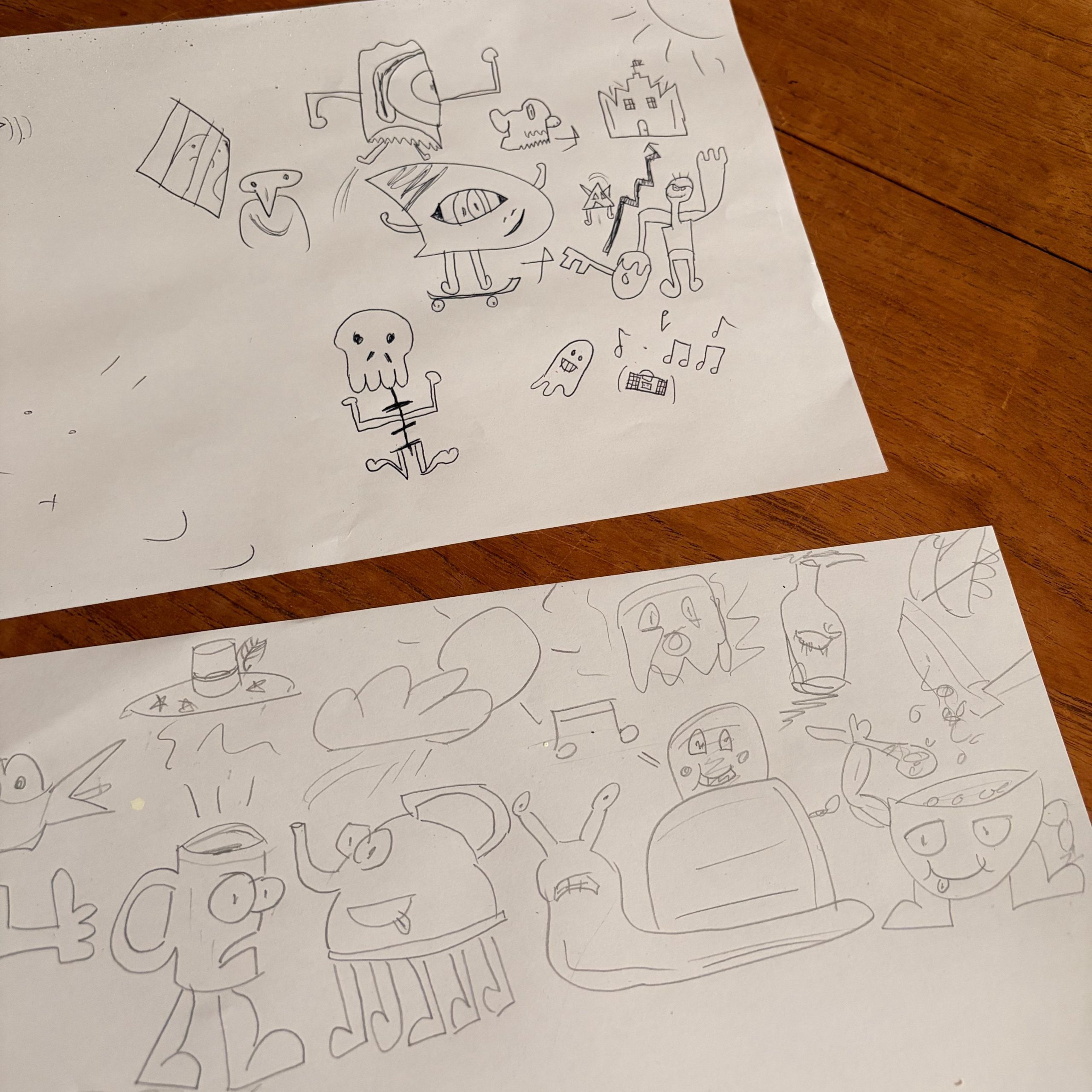 Here are some of things I sketched, as well as my dad’s doodles too. What do you think?